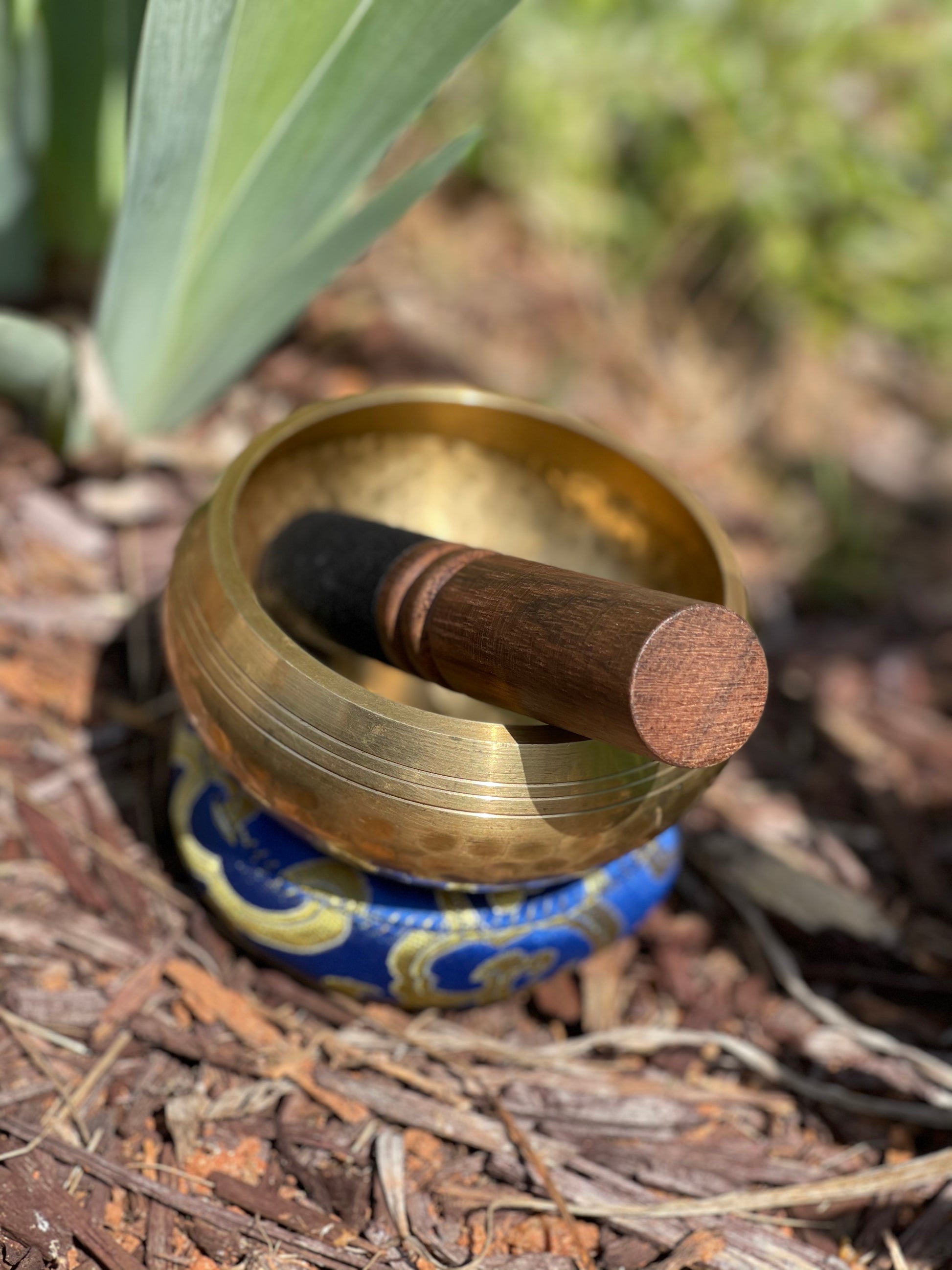 This handheld piece is 9.5 cm in diameter. This piece creates a subtle harmonic sound when tapped or played around the rim. Perfect bowl to start and end your day and become one with the moment or reset for a stressful day.