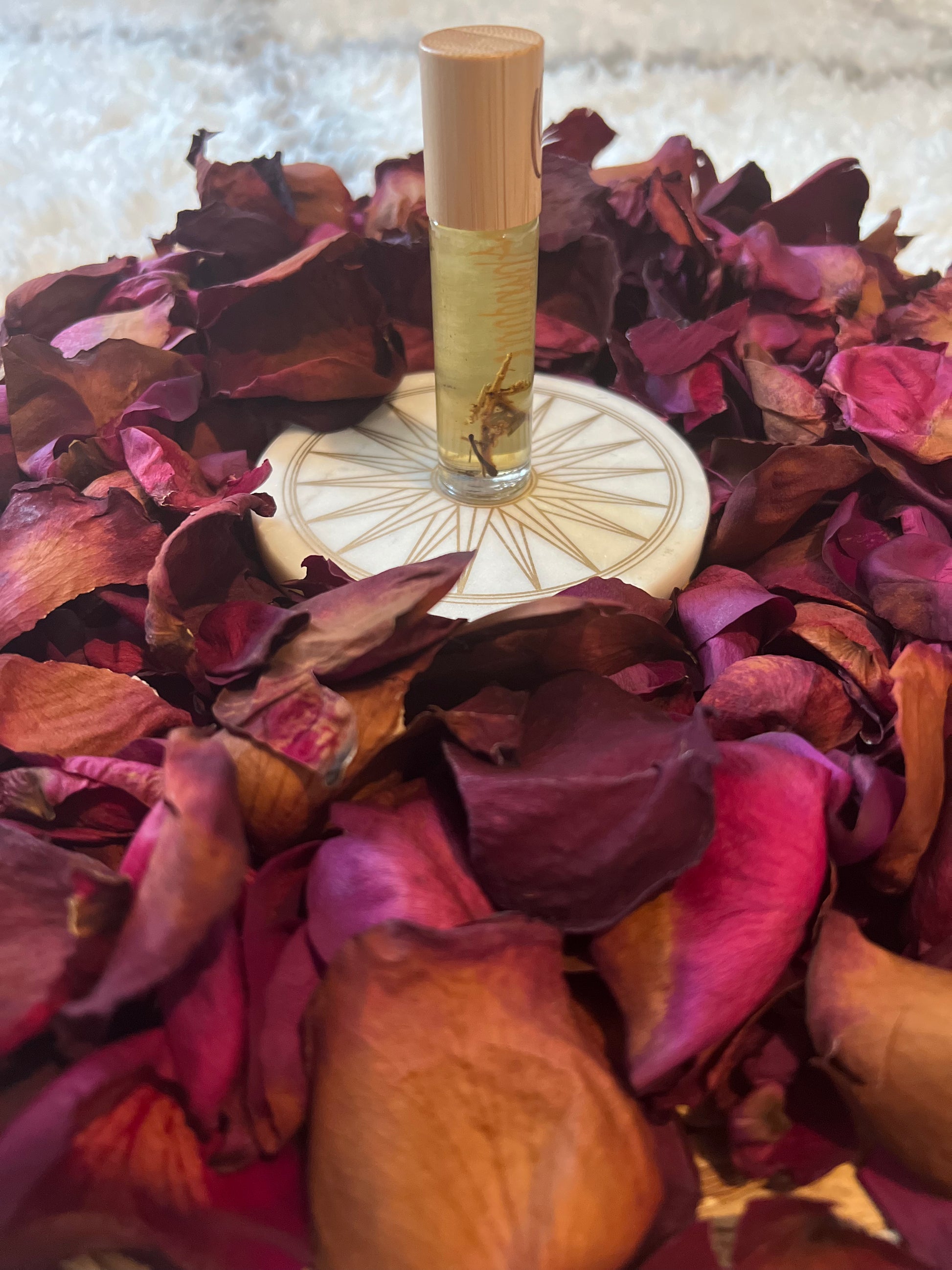 The Abundance oil has an essential oil blend that is comprised of oils that carries the energy of attracting. This oil is intended to manifest, attract money, all things owed back to you, abundance and prosperity . Lastly, it contains dried honey suckle which is known emblematic of the sweet life — a vine that conveys the essence of all things that bring pleasure and joy. Honeysuckle is also cultivated for good luck and prosperity.