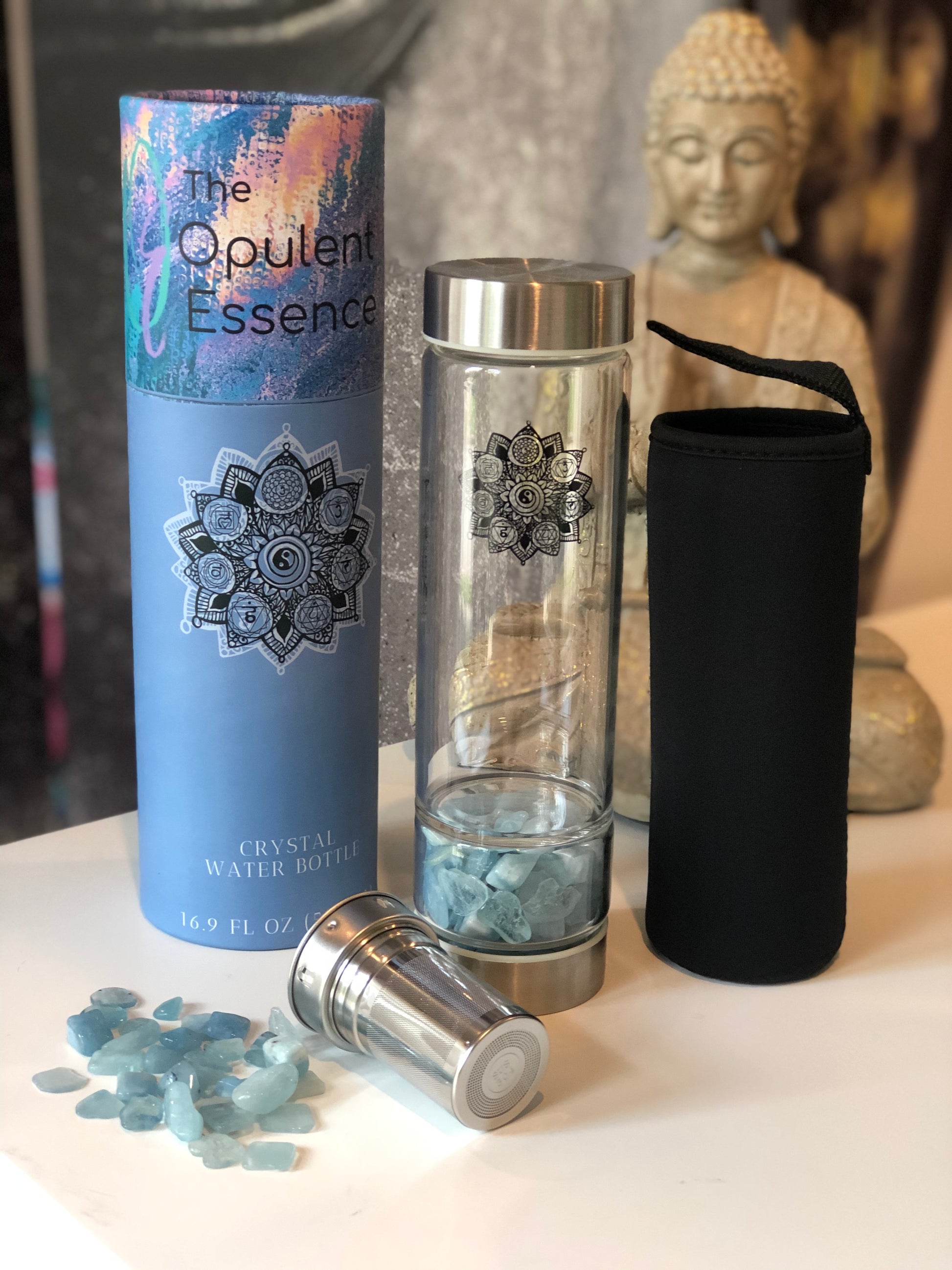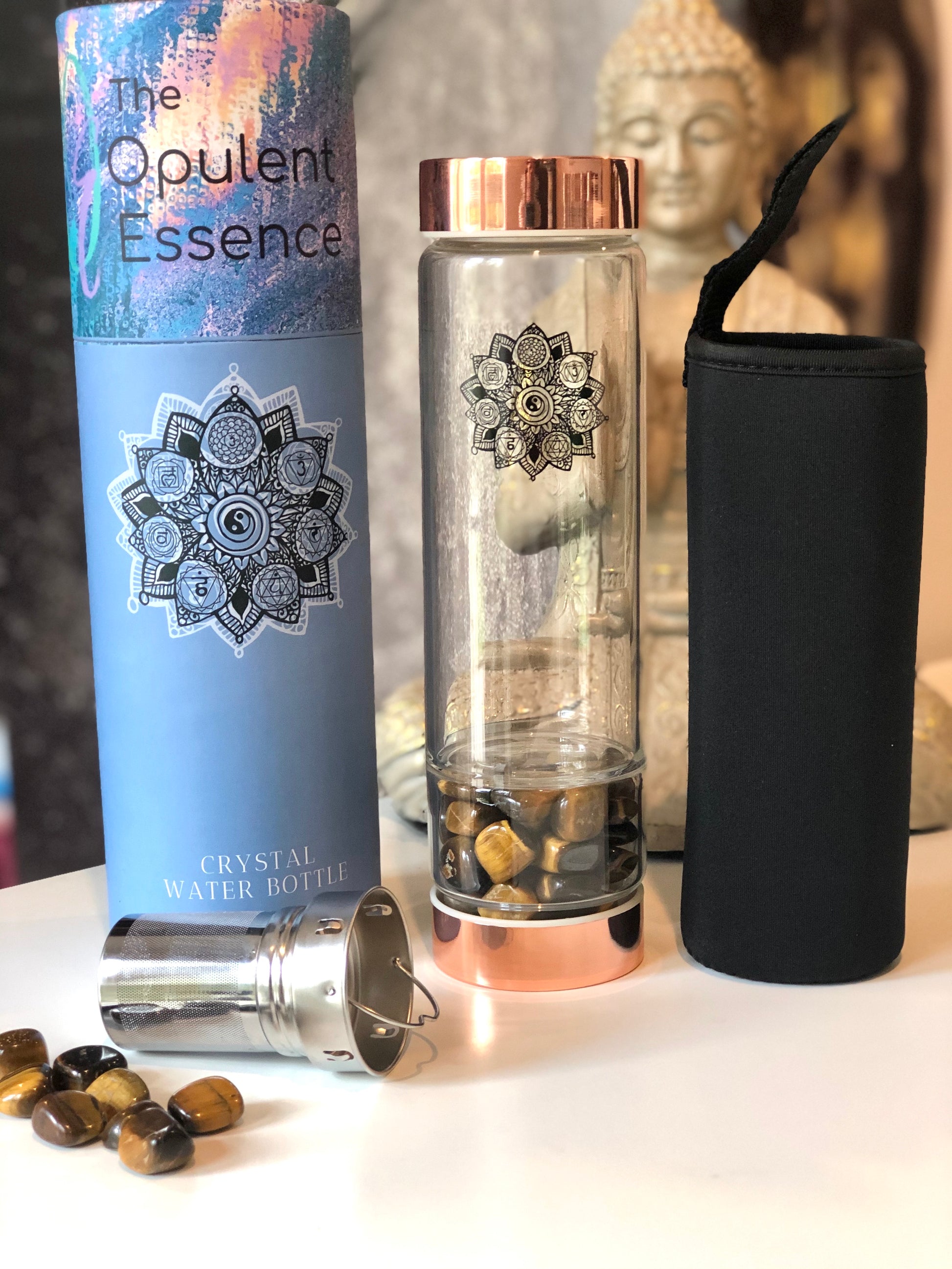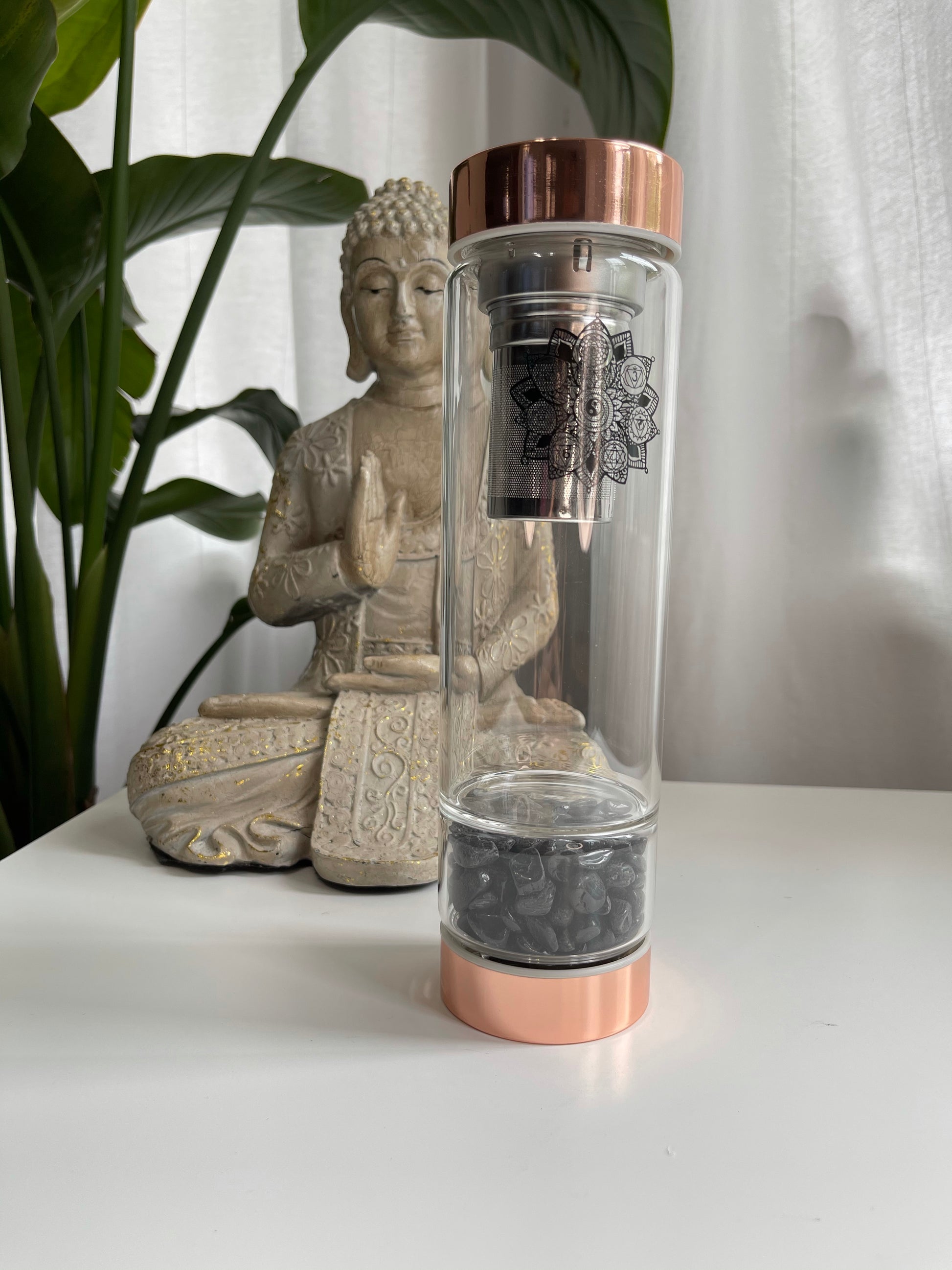 Each bottle contains 100% natural polished Gemstones and holds a capacity of 500ml of water. Our bottles are FDA approved and BPA free made from high quality high borosilicate glass. High borosilicate glass is environmentally friendly, hygienic, durable and thermal shock resistant.