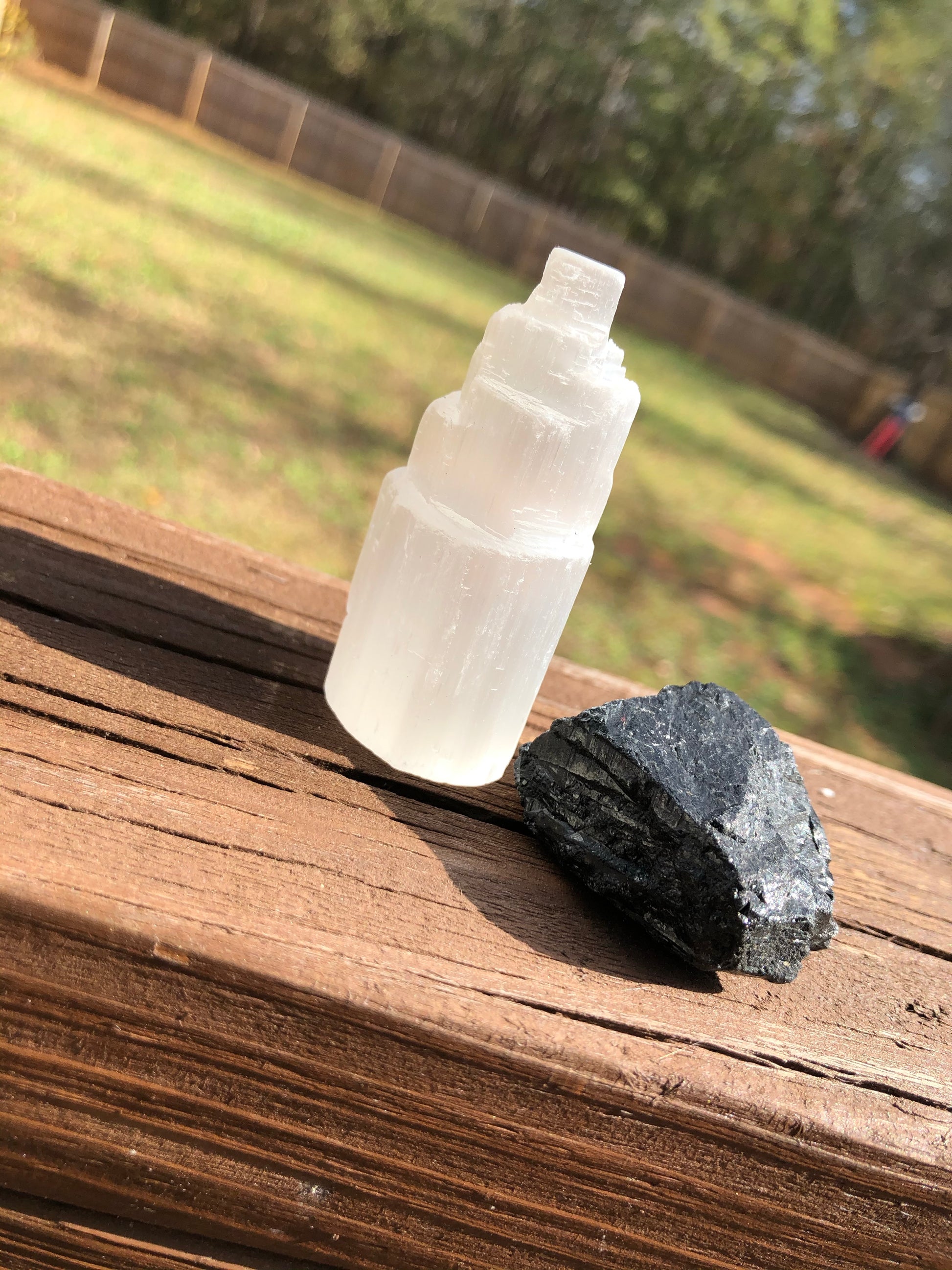 Selenite and Black Tourmaline together is the ultimate protection combo. These two together will protect, purify and cleanse your surroundings.