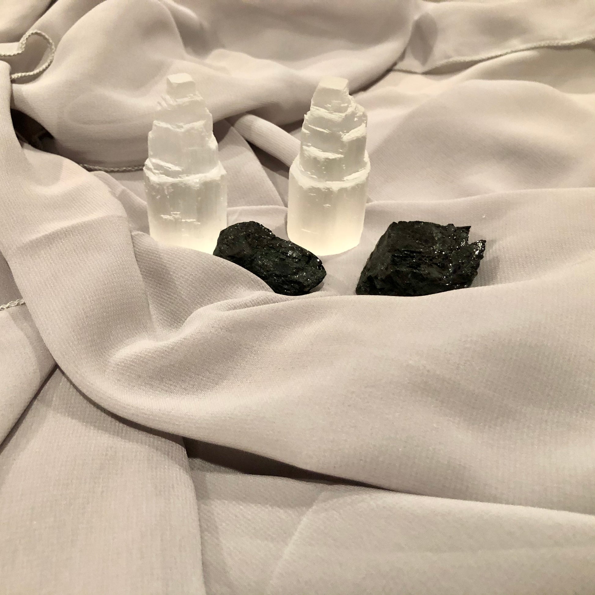 With the high vibrations of Selenite and the protection of Black Tourmaline, Together this dynamic duo makes the ultimate protection kit.