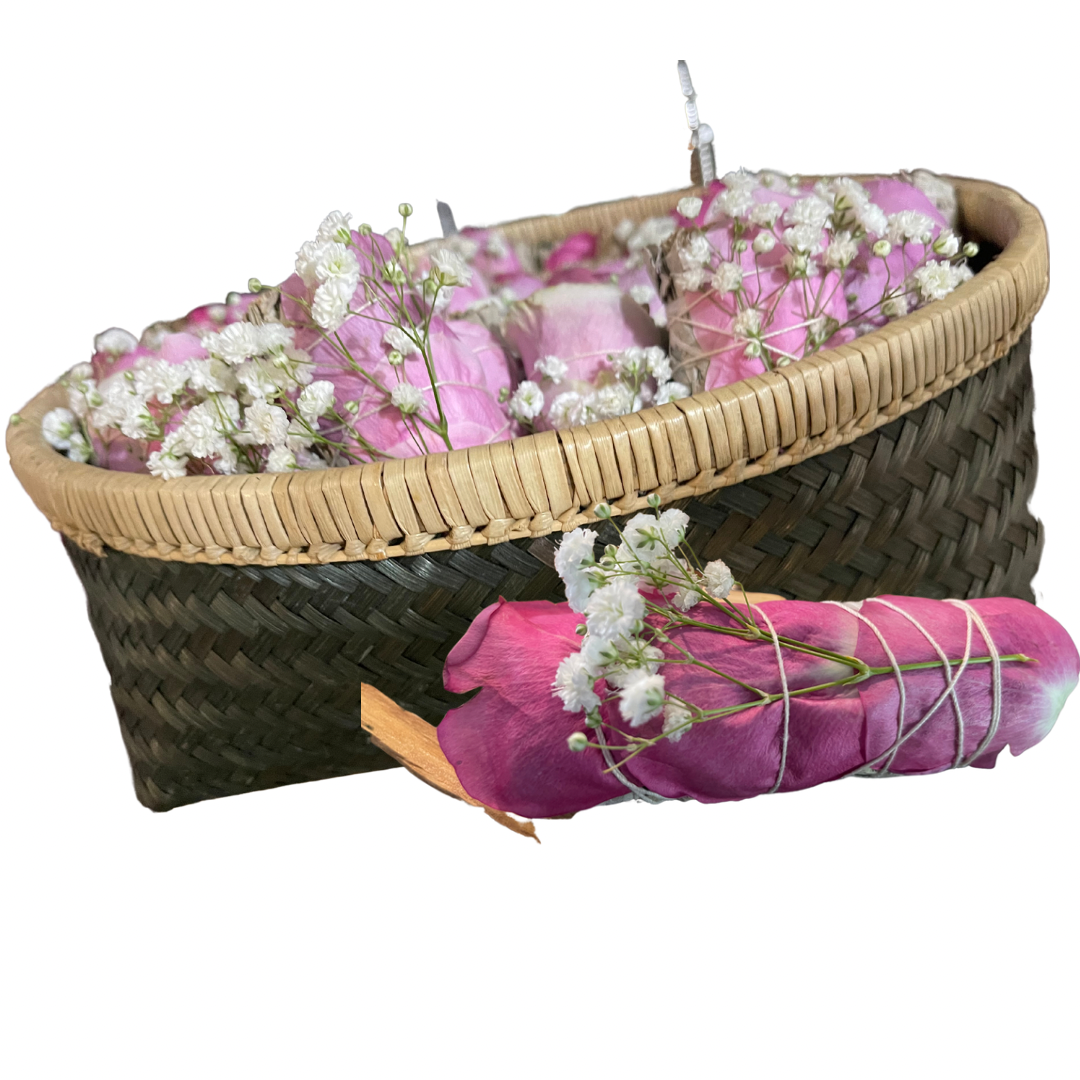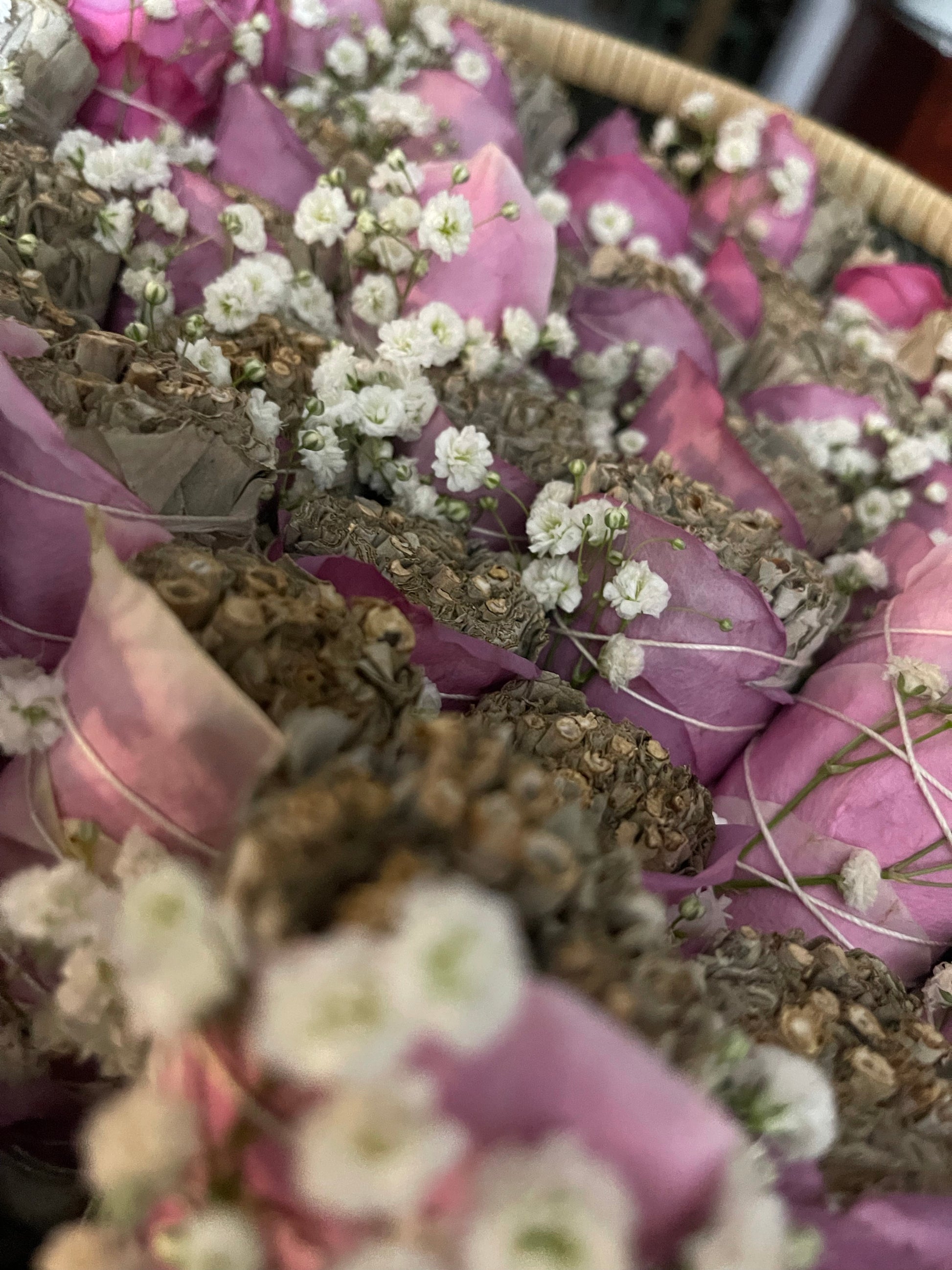 Please note when the rose petals dry, depending on the bouquet used the color may appear lighter than as shown. Color of dried rose petals may vary from photo. Sage bundles will also vary in size.